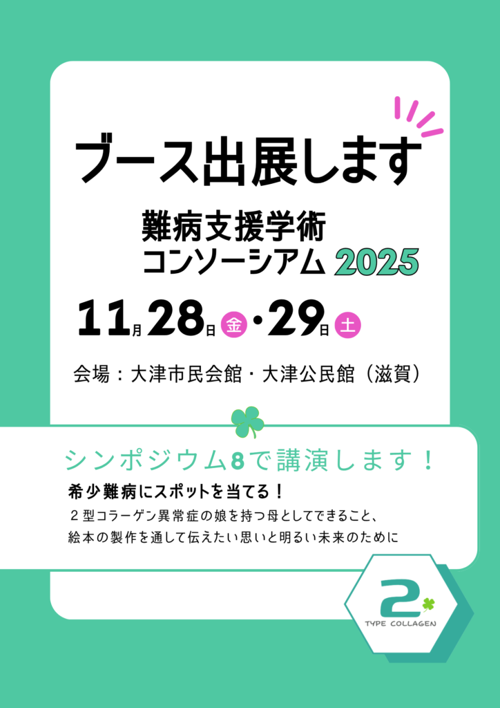 2型コラーゲン異常症患者・家族の会が 2日間、ブースを出展させていただきます🍀✨