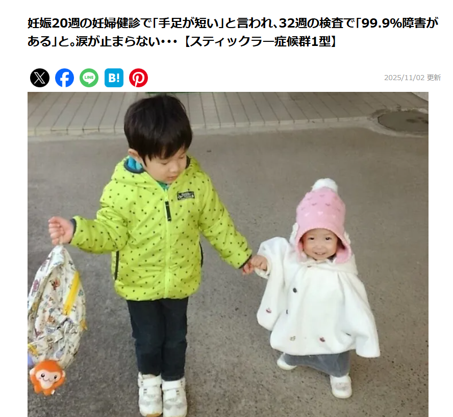 前編「妊娠20週の妊婦健診で「手足が短い」と言われ、32週の検査で「99.9%障害がある」と。涙が止まらない・・・【スティックラー症候群1型】」